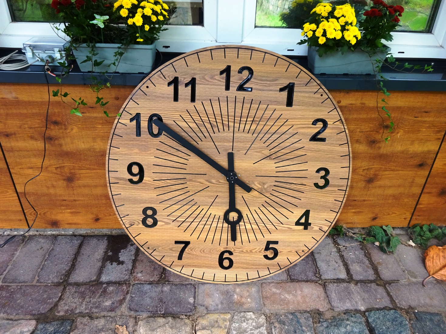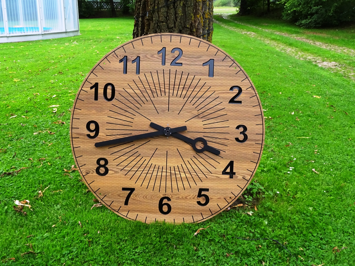 – Ziffernblatt und Zeiger aus absolut wetterfesten HPL-Platten 8mm,